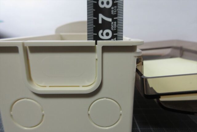子機を内板(プラ盤)に直置きした場合、ボックス上端まで約23-4mmの余裕がある。
