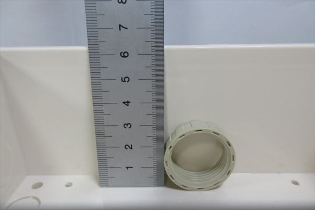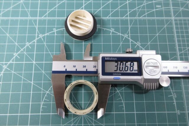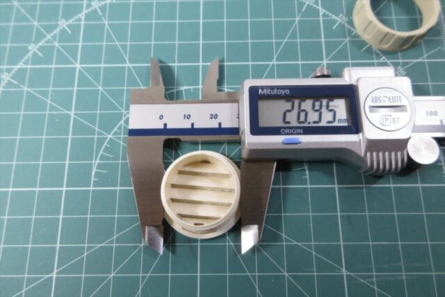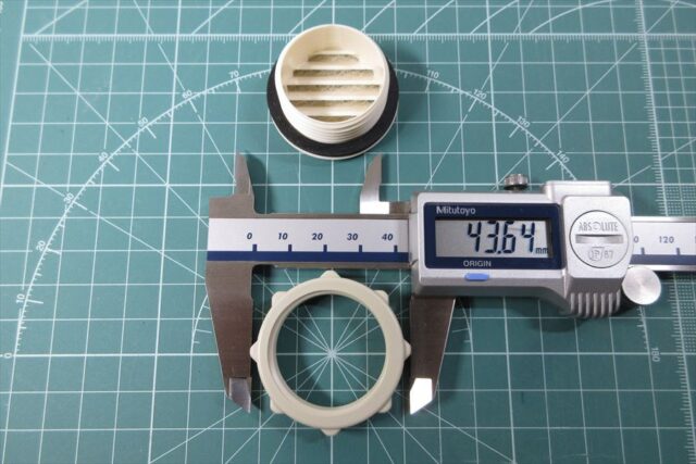 内板(プラ盤)の厚さが15mm、ルーバーのロックナットの外径が44mmあるので、