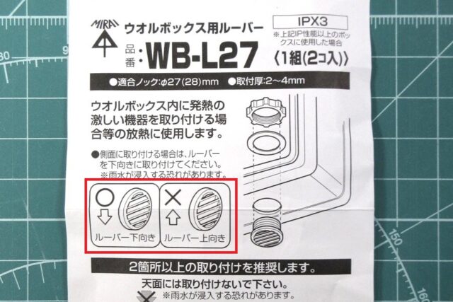 そんな用途のために、ウォルボックス製造元の未来工業からも“ウォルボックス用ルーバー”という通気孔パーツが用意されている。