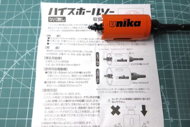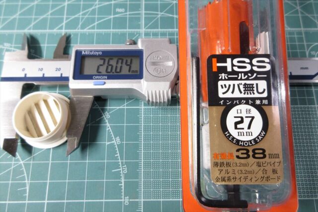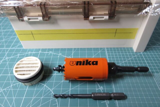 孔あけ道具は「ホールソー」と呼ばれるドリル刃。