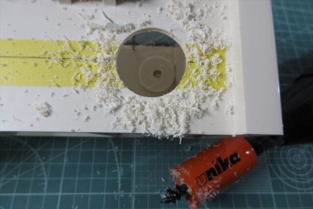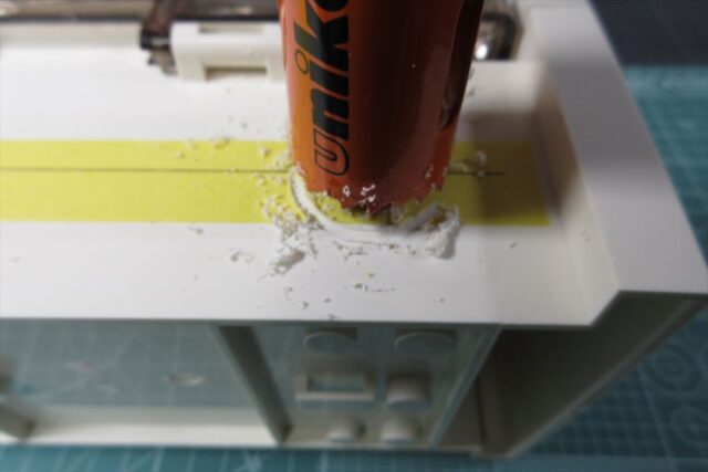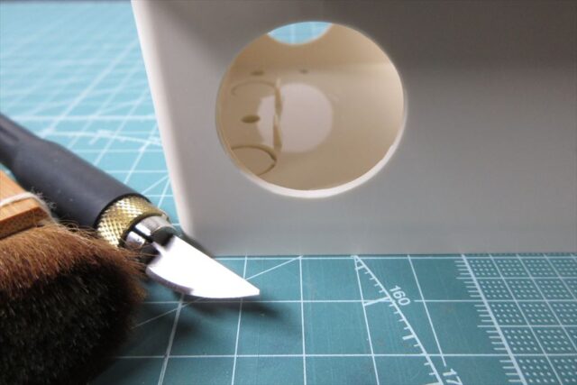 角には切削バリが残っているので、ナイフなどで削り落とす。
