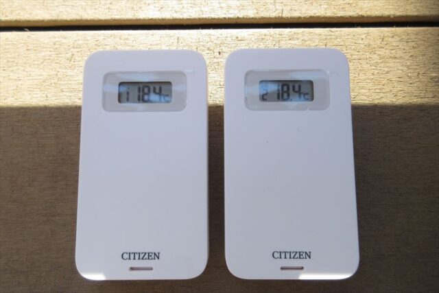 そこで子機を2つ並べて、ボックスの内外で度差が無いのか有るのか、テストしてみた。