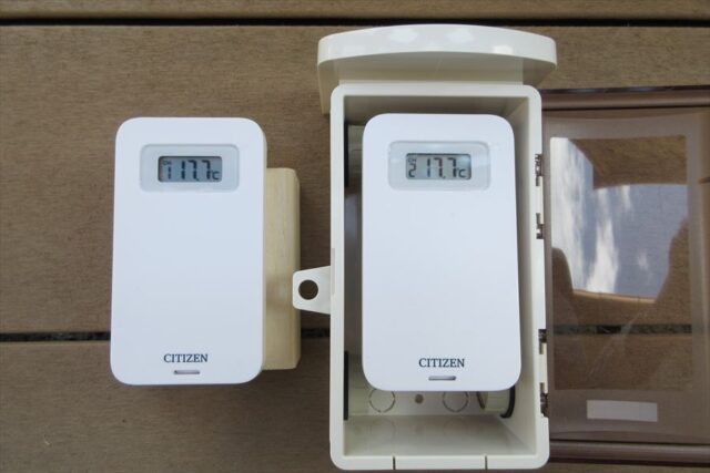 ワイヤレス 電池式CITIZEN THM527 温湿度計子機│防雨ボックスの製作