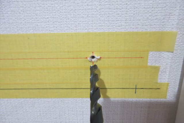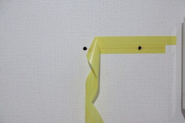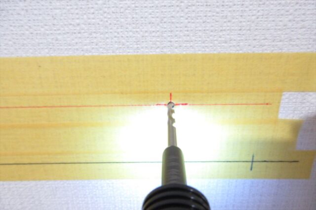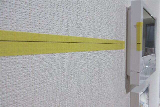 隣のドアホン親機の中心線と高さを揃える計画なので、まずはセンターラインを引いた。