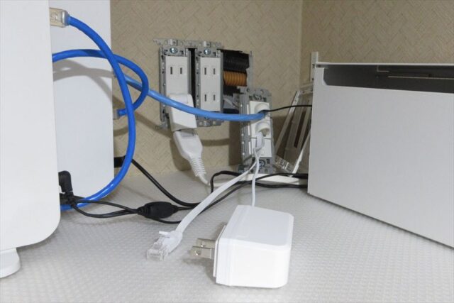 しかしLANケーブルや電源コードがゾロゾロを壁や床を這いまわっていては見苦しい。