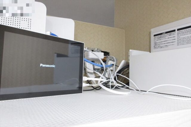 モニタは通信や操作の親機となるため、電源コードだけでなくLANケーブル配線伴う。