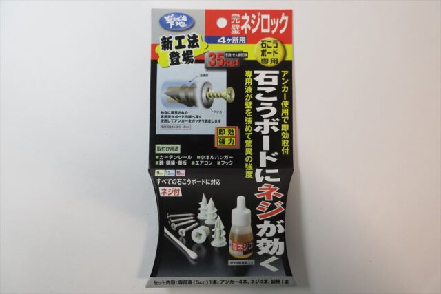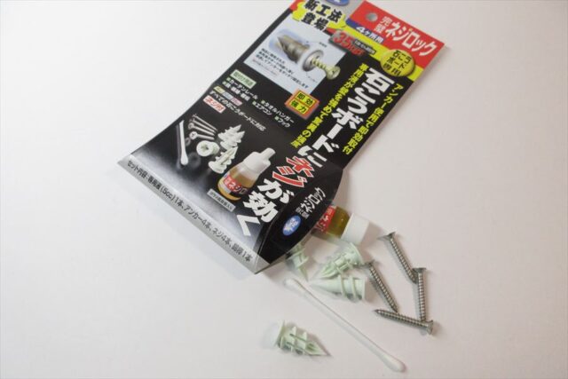 石膏ボード壁に直接ビスや木ネジを締めるわけにはいかないので悩んだが、Amazonで“石こうボード専用ネジロック”なる製品を見つけた。