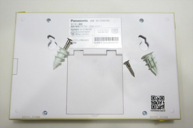親機モニタの裏には“壁固定用の穴”があるので、この2穴で壁に設置する。
