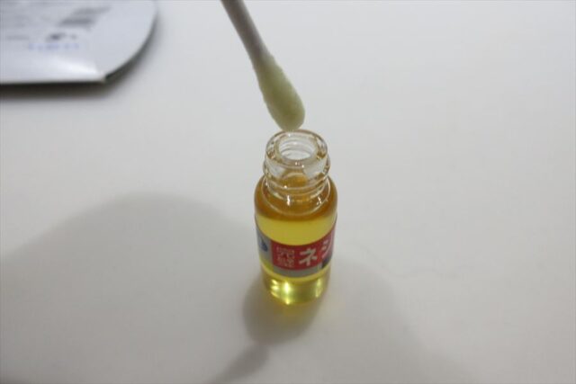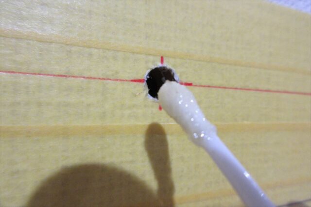 付属の綿棒で穴の内側の全周にたっぷり塗る。