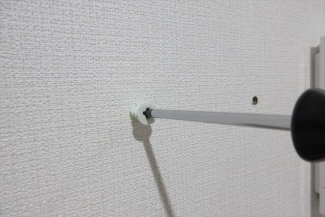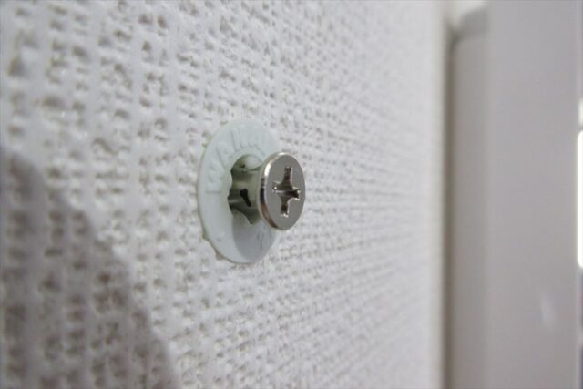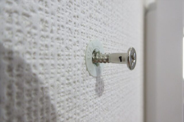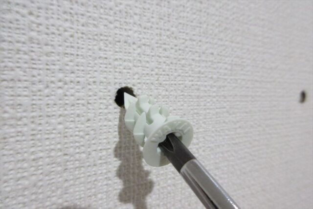 ボードアンカーの内穴に木ネジを捩じ入れる。