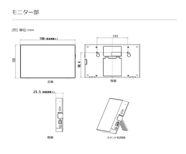 『Panasonic 屋外カメラ VL-CV100K セット』 #1 親機モニタの設置例