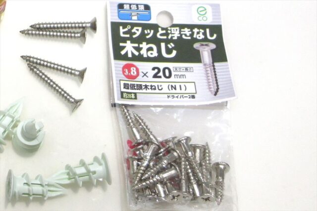 親機の取付穴とボードアンカーの内径を踏まえて、径3.8mmの木ネジを用意した。