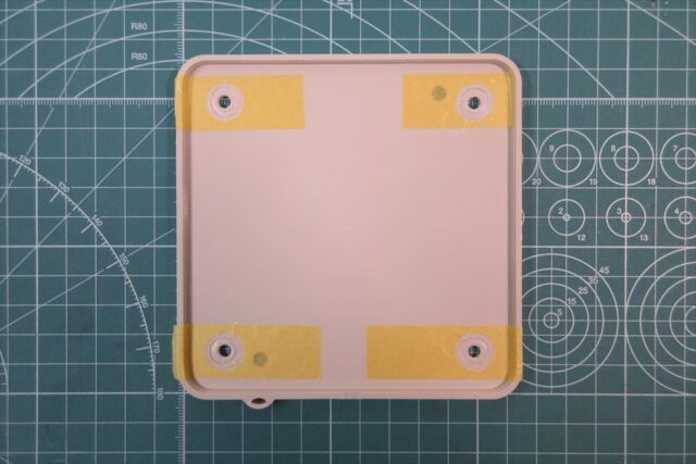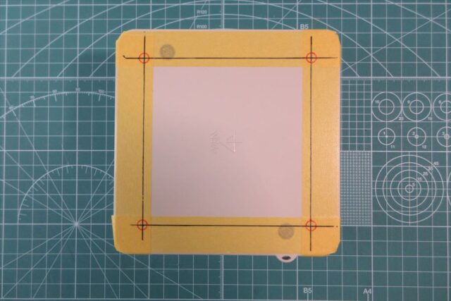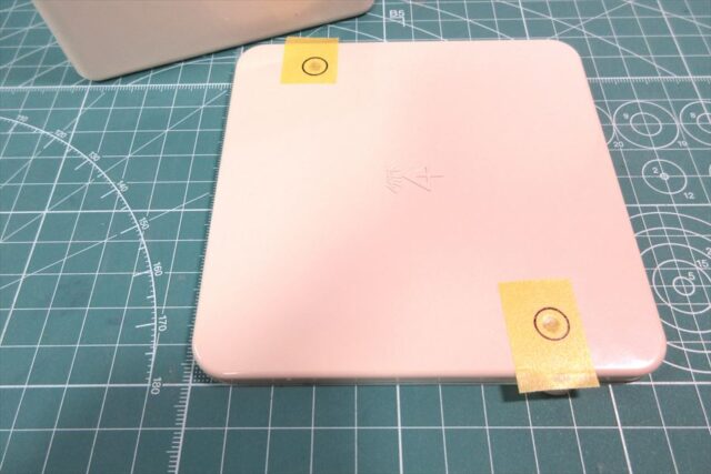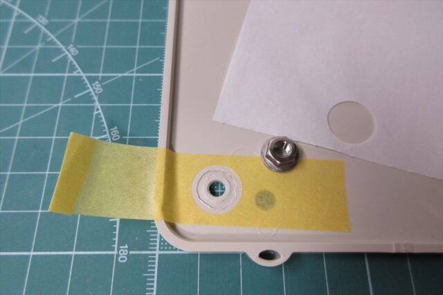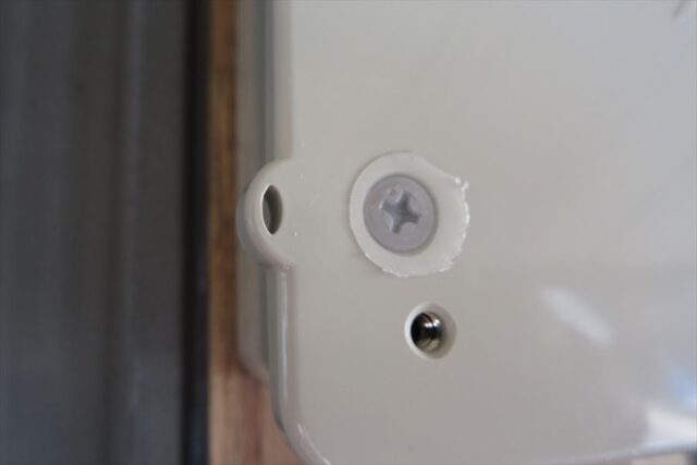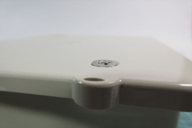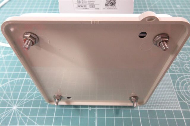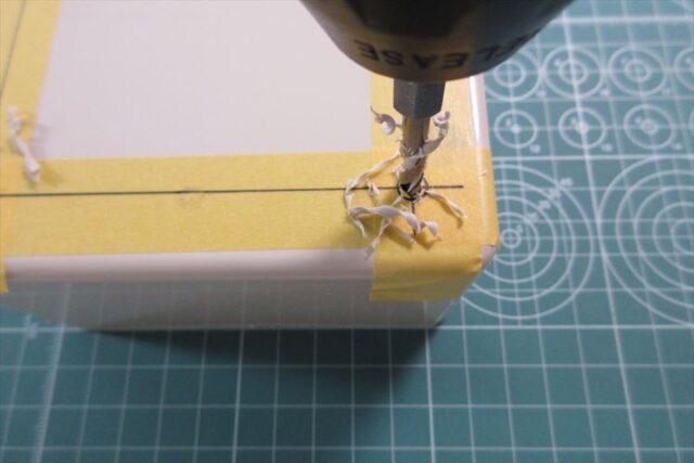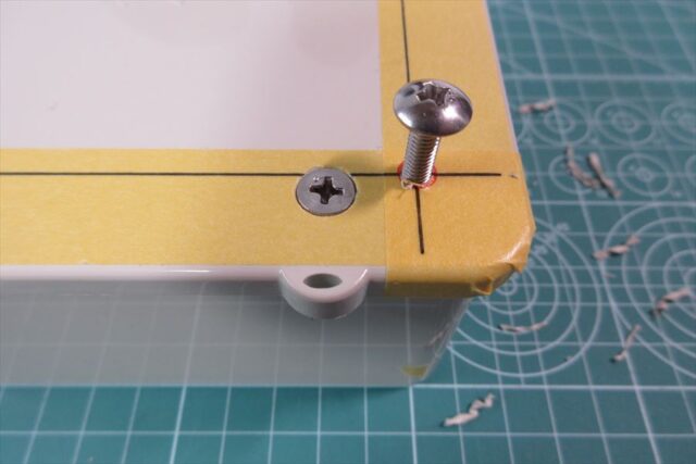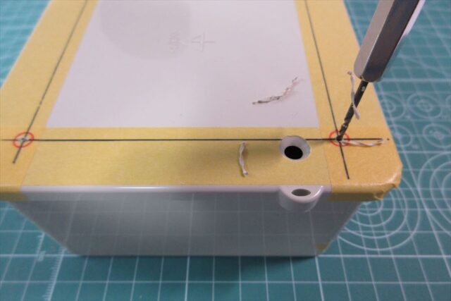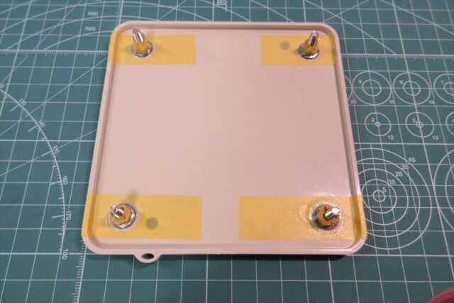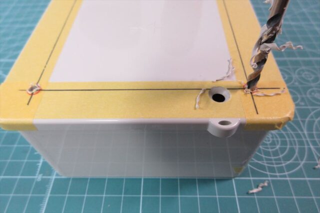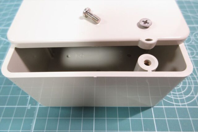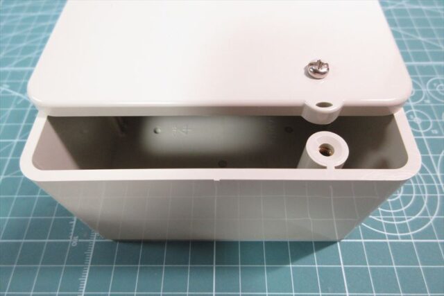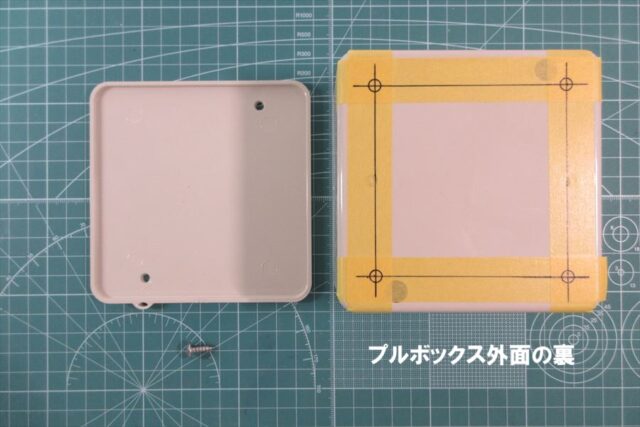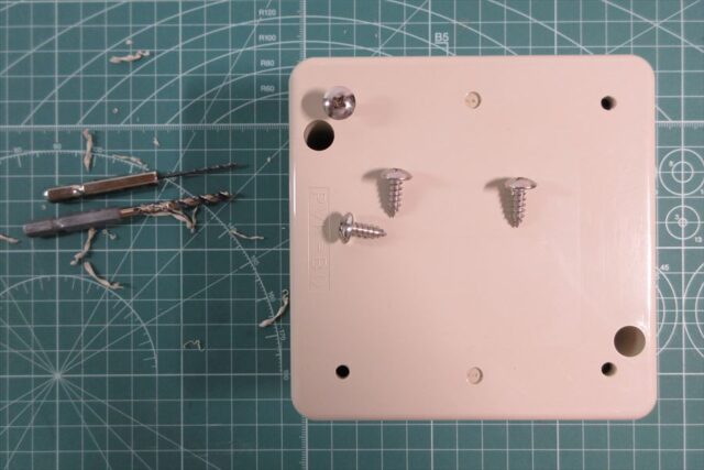 ボックス本体の底側(壁に取り付ける面)に固定ビスの孔を4つあける。