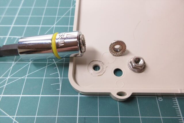 ビスはトラスM4mm×長12mm(ボックス厚3mm+板厚10mmから算出)を使用。