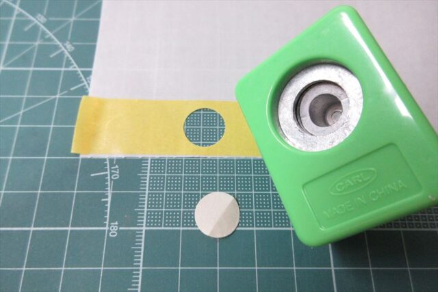 幅18mmのマスキングテープを1/2パンチ(約12mm)で抜き、
