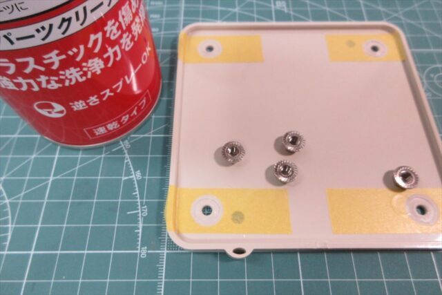 カメラ台座を上蓋に設置するためのビス+ナットを用意。