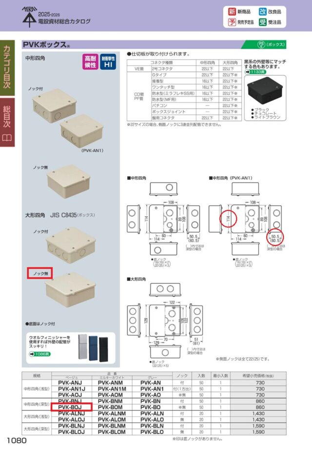 カタログには「高対候性・耐衝撃性・中形四角(深型)」で載っている。