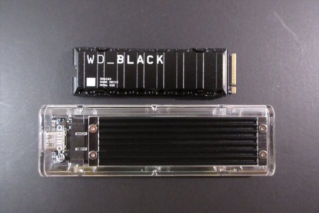 対して、ターゲットSSDのSN850Xもヒートシンク付き。