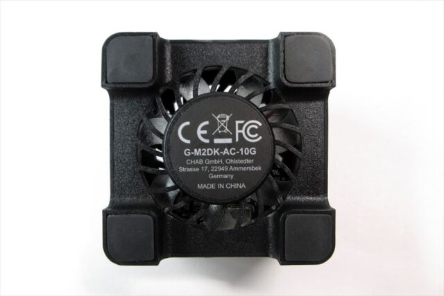 アダプター本体に放熱性能がないためか、冷却ファン使用の注意書きがある。