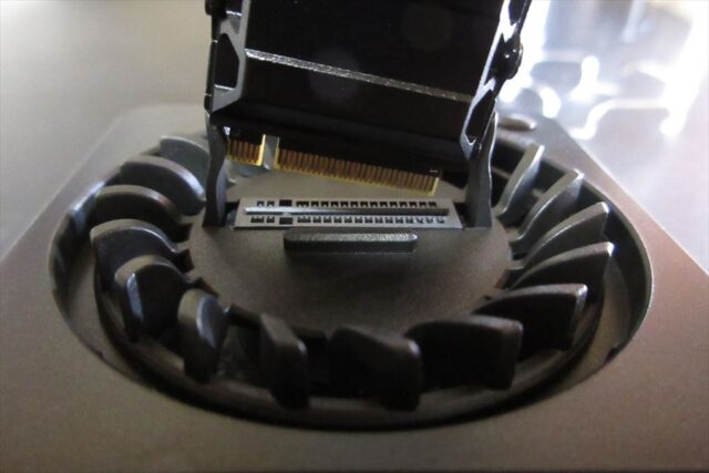 しかしSN850Xの様なヒートシンク付SSDになると、固定爪にヒートシンクが当たってしまって挿し込みが一気に硬くなる。