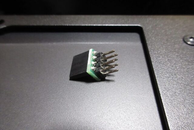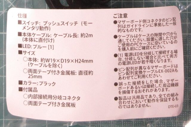 今回マザーボード上の電源スイッチpinやLEDpinを二股にするために、アイネックスDTE-03に付属の二股コネクタを(分割して)使用したが、普通に市販されている二股の分岐ケーブルでもOK。