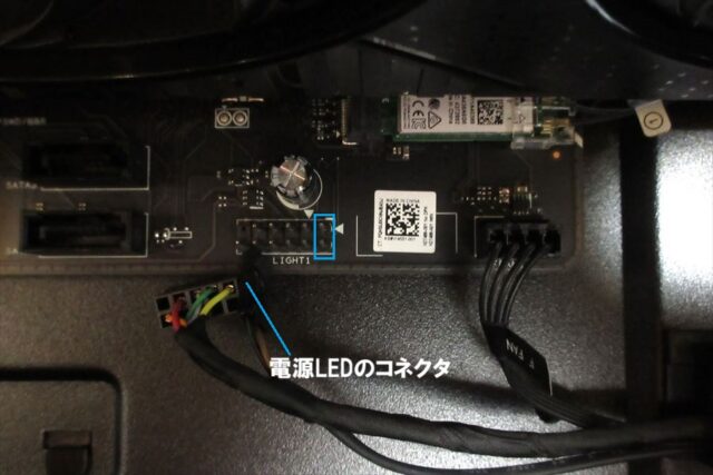電源LED(LIGHT)のコネクタを抜く。