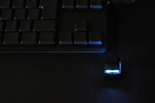 KEY型リモートスイッチには青色LEDが仕込まれている。
