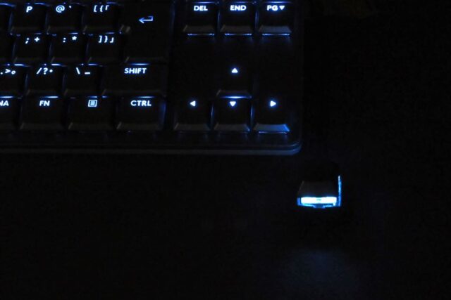 KEY型の遠隔スイッチ自体は“キーキャップ”なので小さく、それほど目障りではない。