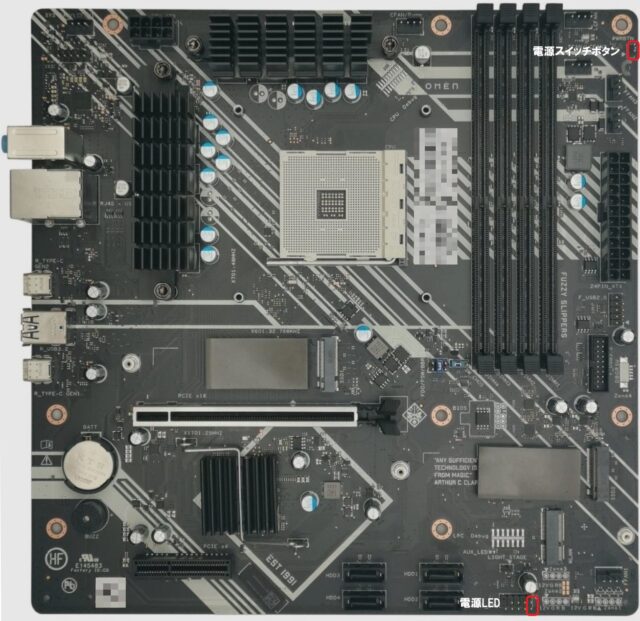 電源スイッチ(PWRBTN pin)の位置。