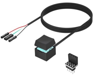 通常のPCでは電源スイッチとLEDは1か所にまとまった“ヘッダ”になっているので、この4pin二股コネクタをそのまま挿して使用すればOK。