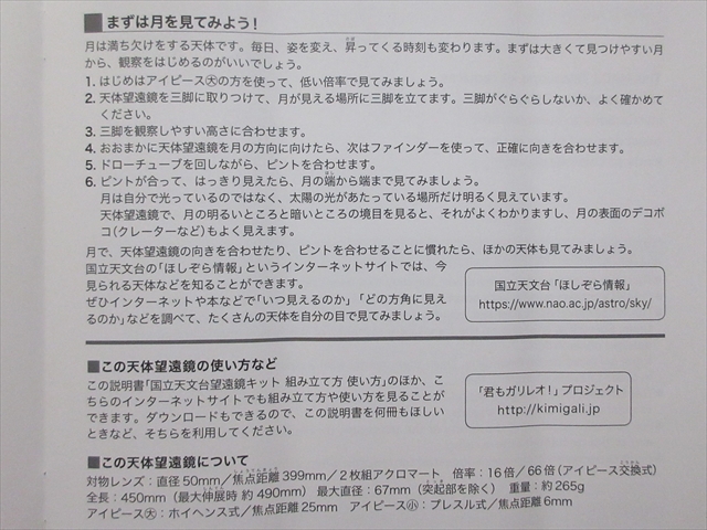 「望遠鏡の中身は?どうやって使う?」など初めての天体入門する人たち子供たちでも手軽に扱えるところが良い。