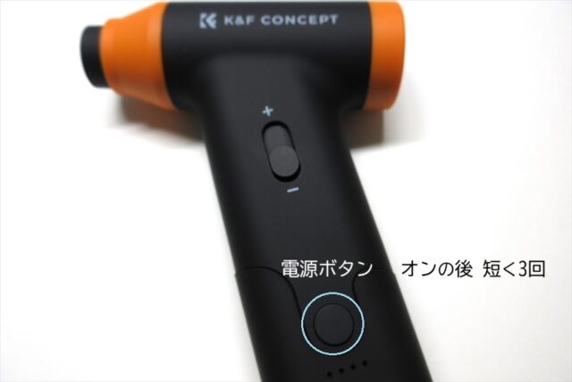 風速レバーをマイナス最小(無風)にした状態で、電源ボタン長押しするのは同じ。