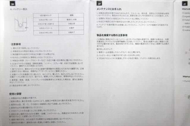 | 取扱説明書 | 日本語あり | 全て日本語 |