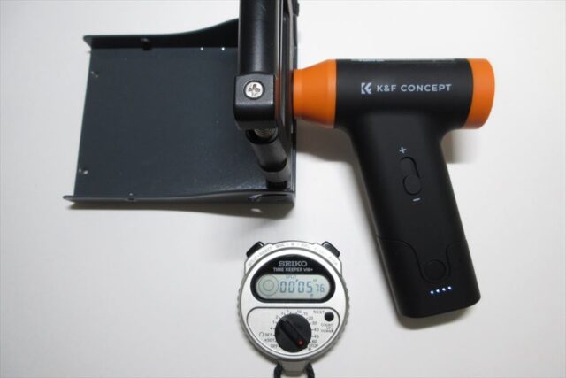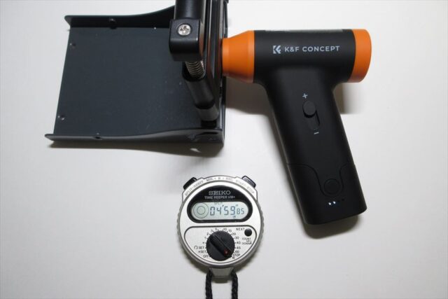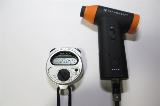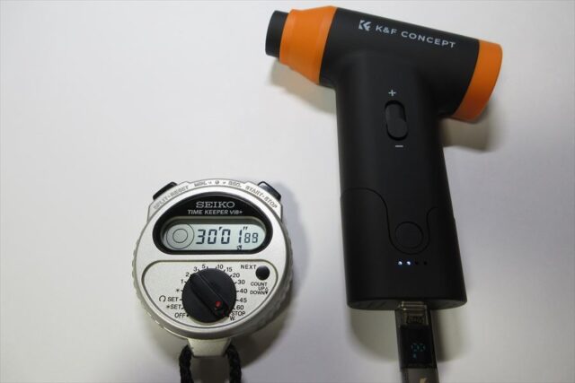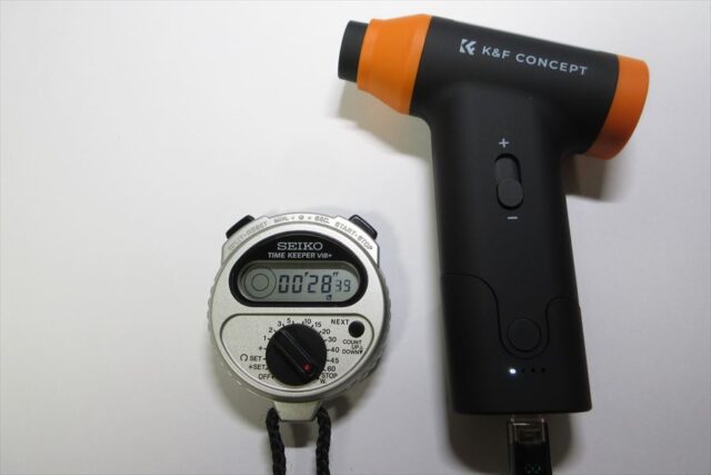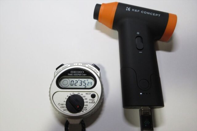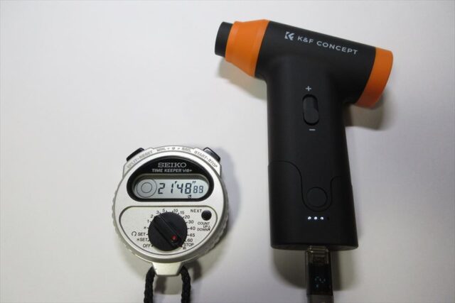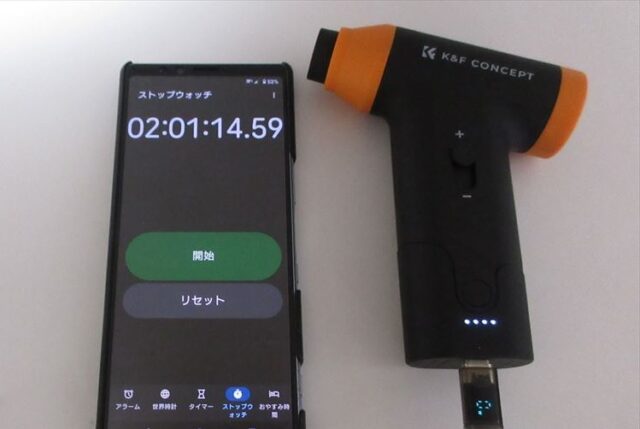 吸引モードには通気抵抗の大きいダストカップをつけていたが、連続使用時間に影響は無いようだ。