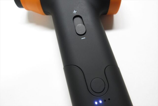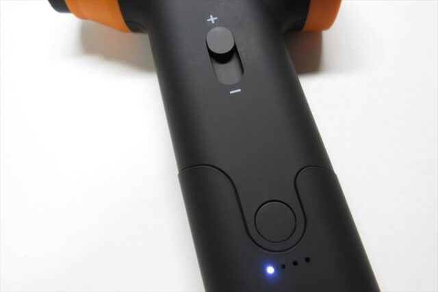 グリップ下(左面)の電源スイッチ下にはLEDインジケータ。