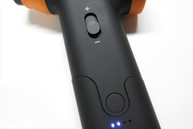 ONになると4つのLEDが点灯するので、さらに電源ボタンを3回押して「吸引モード」にする。
