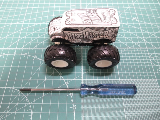 今回のHot Wheels モンスタートラックは、白×黒モノトーンな“リングマスター”。