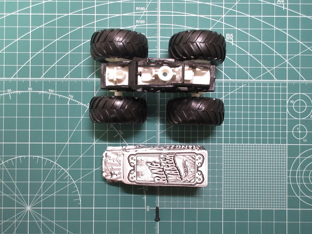 モンスタートラックはシャシーの中央に固定の柱があり、ここで固定されている。