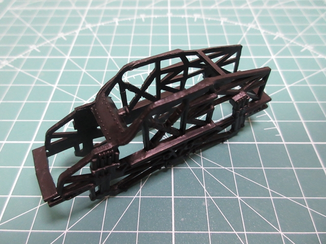 ダイキャスト製ボディ、ロールケージフレーム、シャシー&タイヤのユニット。
