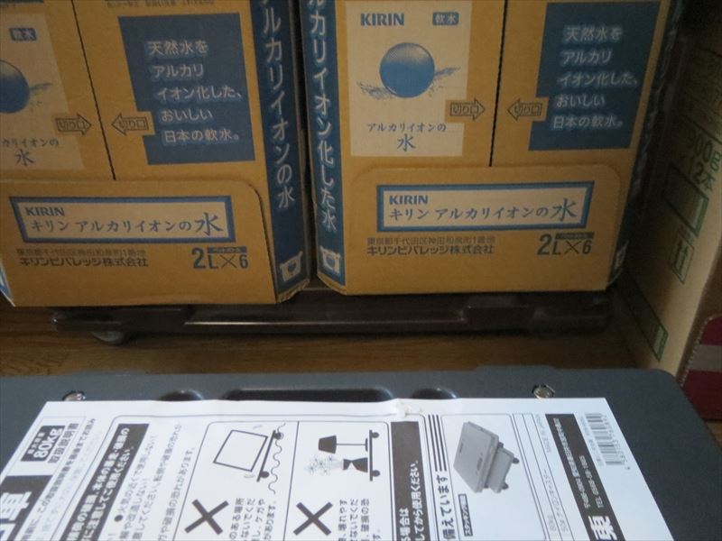 2Lのペットボトル×6本入りダンボール箱を4箱(約50kg)乗せている。